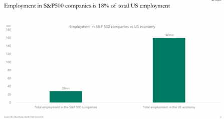 But a recent analysis from Apollo’s Torsten Slok offers a useful reminder that the companies generating all that media heat represent a much smaller slice of the actual economy than the coverage suggests. And the numbers, read carefully, point straight to Main Street.