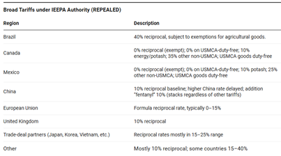 Third, revenues might be steady, but the rates paid by specific industries and countries will likely change. As noted by The Budget Lab, effective tariff rates will drop from around 14 percent to 8 percent under the court decision, but that’s before any replacement tariffs are imposed. So Brazil is no longer looking at 40-percent, country-specific rates under IEEPA, but its exports will likely be hit with the 10-15 percent replacement tariffs Trump referenced last week: